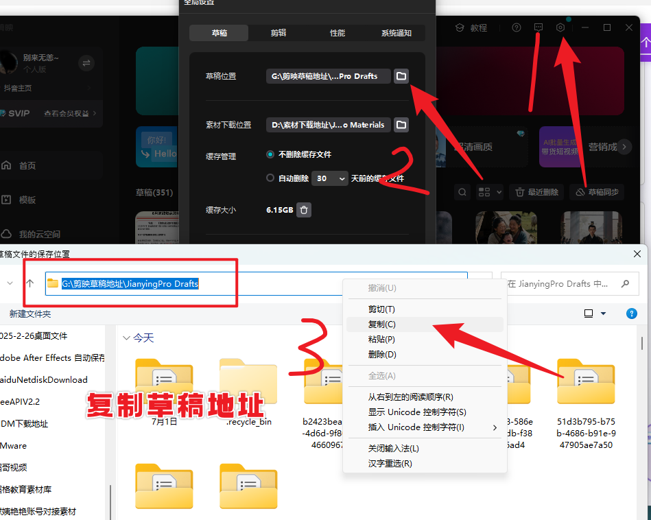 注意:尤其是 这个 文件夹地址看清楚 一定要有,也就是剪映草稿地址和小助手地址一定要用同一个。这样通过小助手下载的视频草稿, 会直接自动导入到剪映草稿里面了。