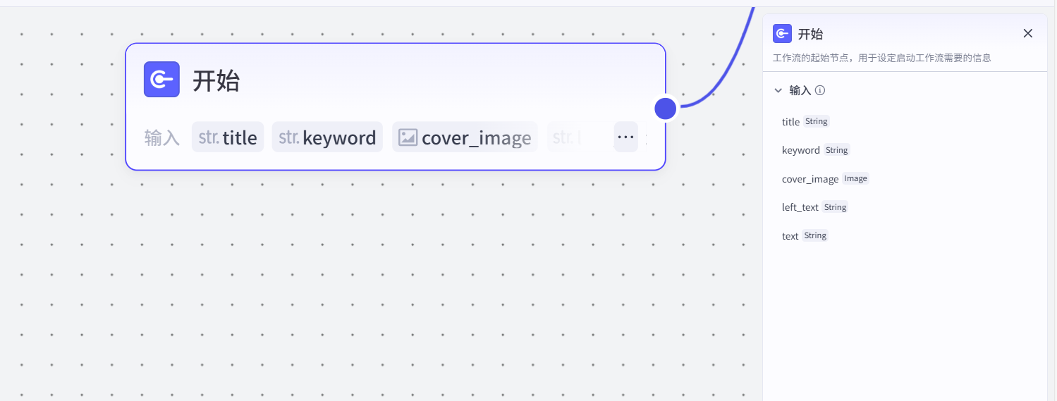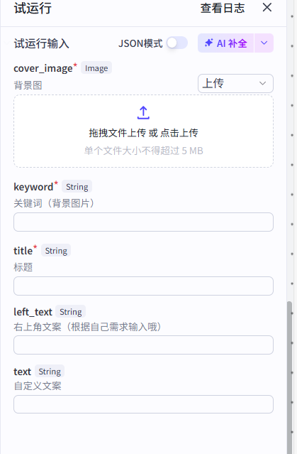 使用说明开始节点: 结束节点: 运行参数配置: *注意事项:主题关键词和背景图片尽量要有一定关联性,右上角可设置自己的logo