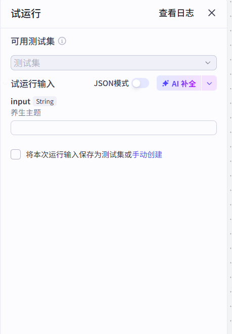 开始节点: 结束节点: 运行参数设置: *注意事项:input 养生主题