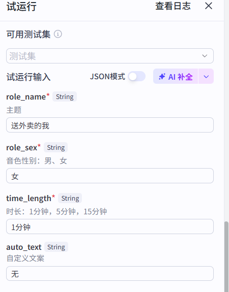 *注意事项:role name 主题,role sex 音色男女, time length时长