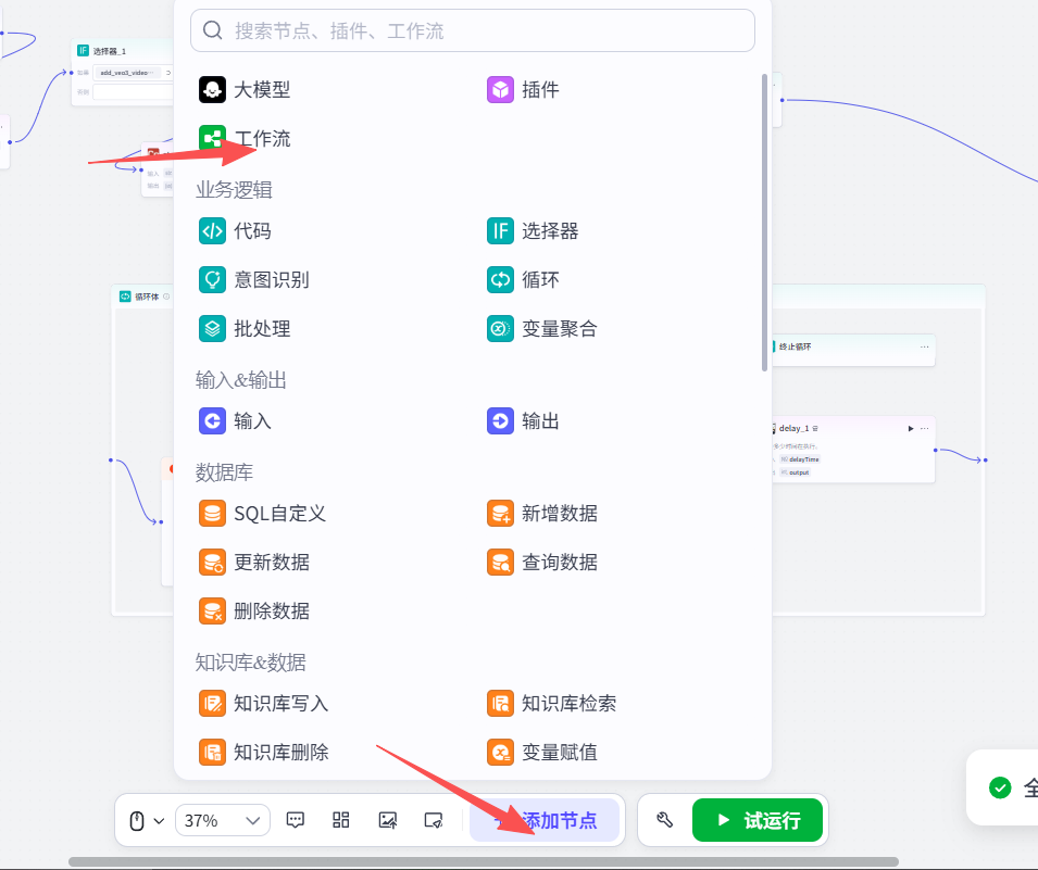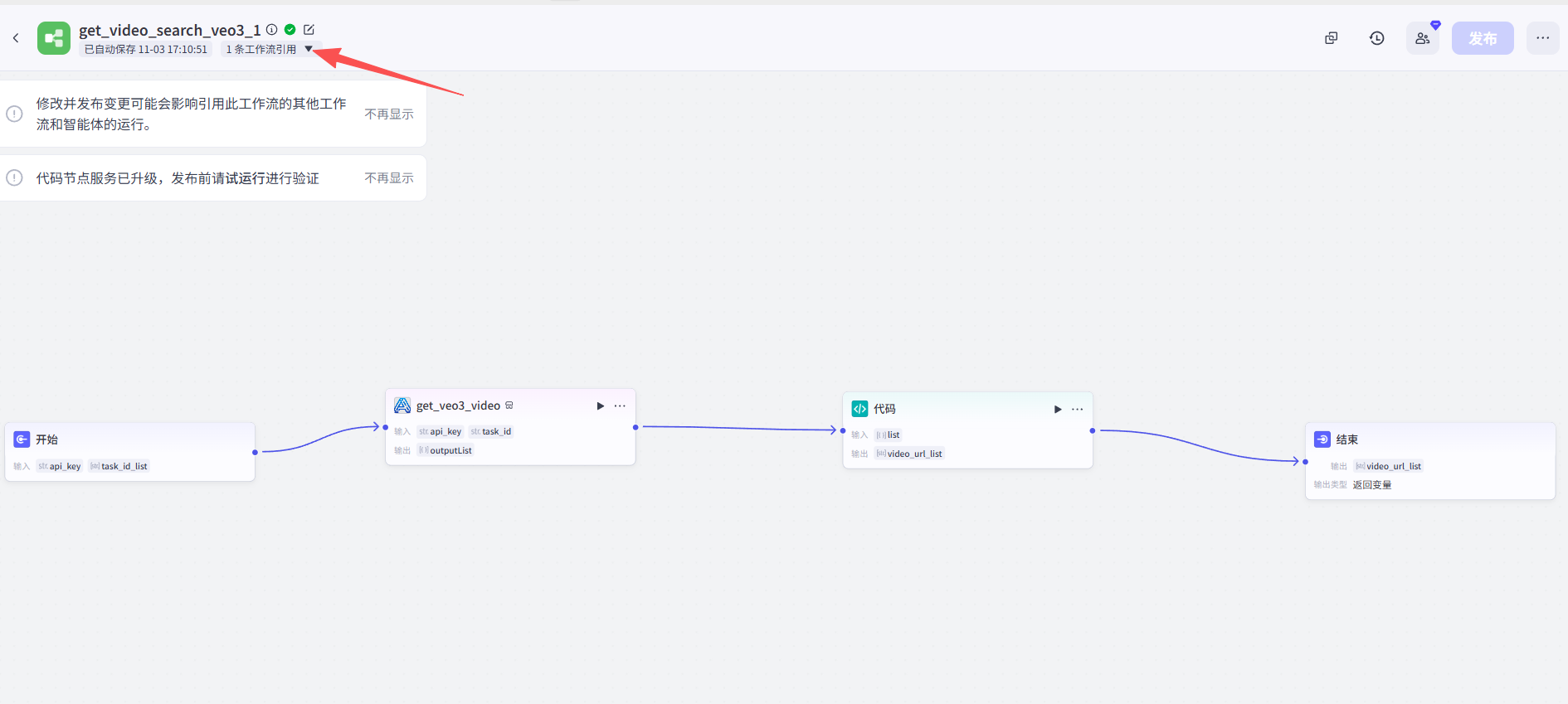 *注意事项:制作该视频含有两条工作流,先将get video工作流导出发布,再在万物工作流里面添加替换节点,然后参数按照原有节点参数配置
