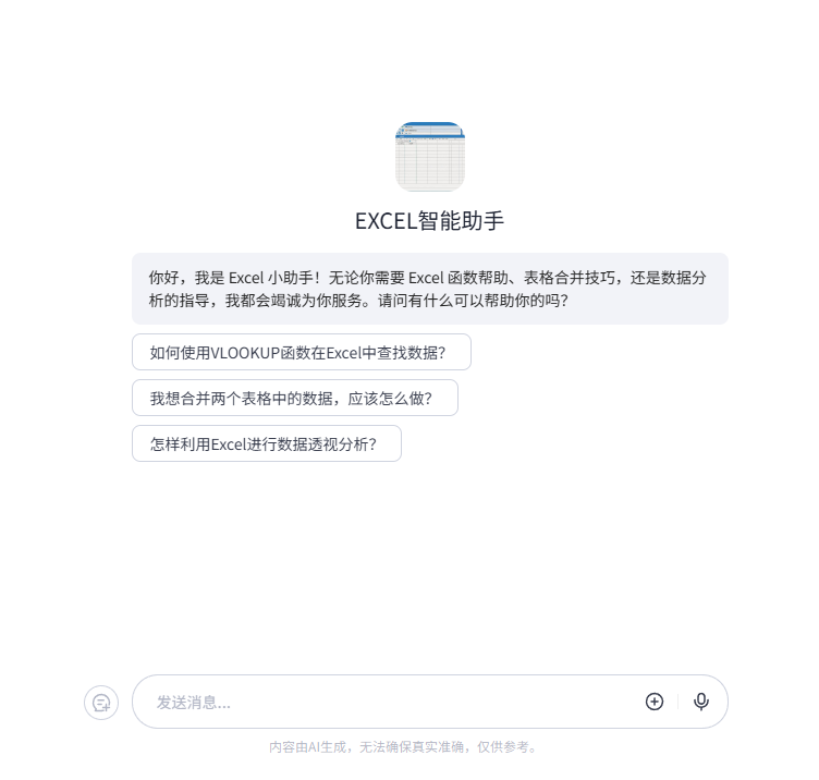 EXCEL智能助手 访问智能体 手机查看 手机扫一扫打开链接 作为Excel专家智能体,帮助初学者解决Excel函数、表格合并、数据分析、VBA代码、POWRQUERY等日常问题。 智能体, 表格 链接直达