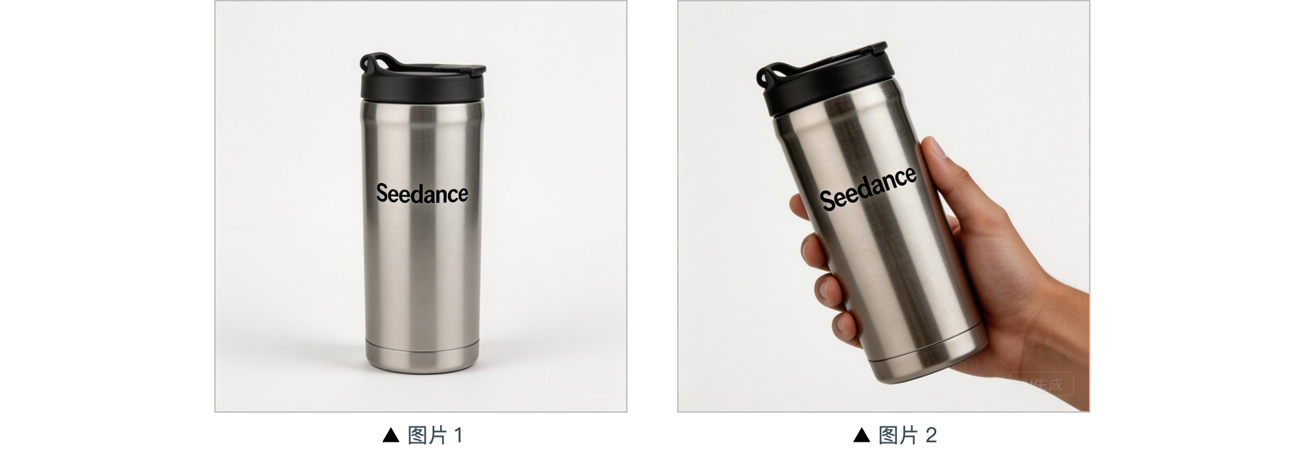 提示词:背景为暖调居家场景,中景呈现参考图中的保温杯,镜头平稳推近至保温杯近景,镜头外一只手自然入镜轻握杯身拿起保温杯,镜头跟拍手部微微旋转动作展示。